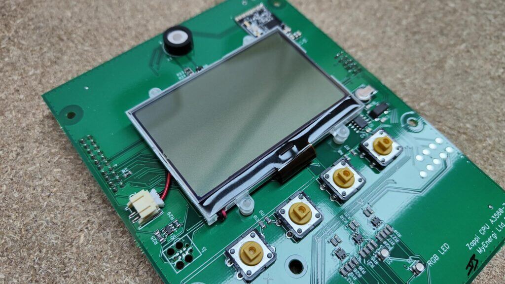 Het display zit aan de binnenkant van het front, aan de achterkant van de CPU plaat wat daar zit. Bij de Zappi 2.1 zit er zelfs nog een extra CPU plaat overheen met daarop o.a. de Wifi module.