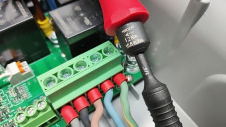De tweede reden is als tijdens de installatie de schroeven te hard zijn aangedraaid waardoor de metalen elementen in de terminal blocks kunnen breken. Er wordt dan geen goed contact meer gemaakt waardoor er mogelijk geen stroom meer door het apparaat kan vloeien.