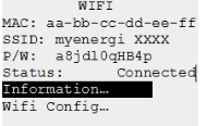 To verify if the connection has been established correctly, check the WiFi settings in the zappi's Menu to see if it says 'Connected' under Status. If it doesn't, something went wrong, and you should retry the connection from Step 1.